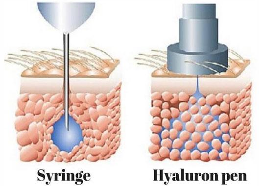 Οι διαδικασίες του Hyaluron Pen και των fillers αποτελούν δυο τελείως διαφορετικές εφαρμογές. Τα fillers είναι ενέσιμα υλικά τα οποία αλλάζουν αρκετά την εμφάνιση του προσώπου. Όσο πιο πυκνό είναι ένα filler τόσο πιο βαθιά πρέπει να γίνει, οπότε το αποτέλεσμα είναι μεγαλύτερο και με μεγαλύτερη διάρκεια. Όσον αφορά το Hyaluron Pen τα υλικά που χρησιμοποιούνται έχουν μικρότερη πυκνότητα και εισχωρούν στην ανώτερη στοιβάδα του δέρματος, το χόριο. Αυτό σημαινει ότι ανταγωνίζεται ένα πολύ μικρό ποσοστό fillers που λειτουργούν με αυτό το τρόπο. Ετσι το Hyaluron Pen είναι κυρίαρχος στην κατηγορία του.
